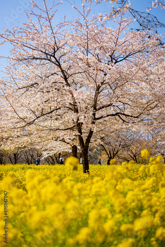 © Ryo Yamashita, Fototapeta premium 桜並木と菜の花畑