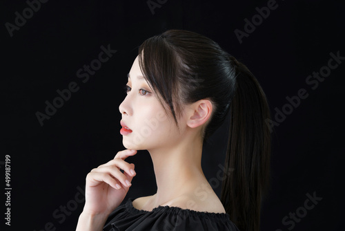 © maru54, Obraz premium 若い女性と黒背景