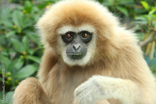Obraz premium 正面を向いたシロテテナガザル 写真 アジア