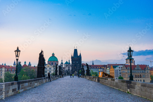 Obraz premium チェコ プラハ 夜明けのカレル橋