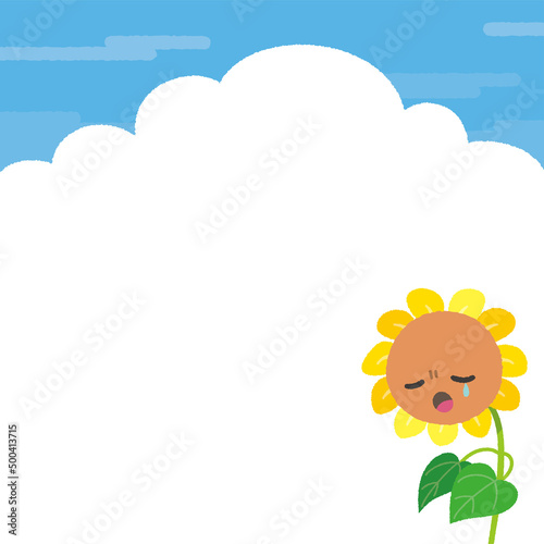 Fototapeta premium 夏空とかわいいひまわりの背景 キャラクター 泣き顔 正方形