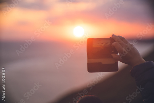 © mm, Fototapeta premium 沖縄県の離島宮古島サンライズスポットから元旦の朝日を眺める人々