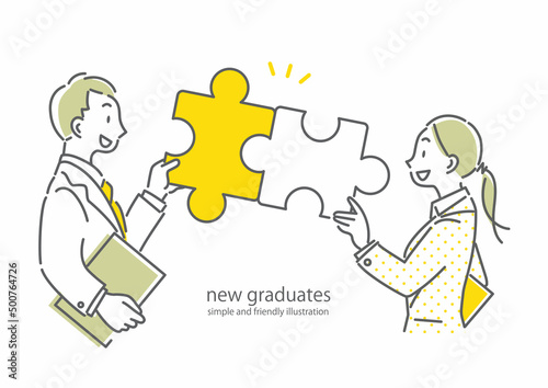 © fumi, Obraz premium 若いビジネスパーソン 協力 女性 男性 シンプルでお洒落な線画イラスト