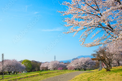 © megustaelbosque2020, Obraz premium うららかな春の日に、満開の桜を眺ながら散歩する