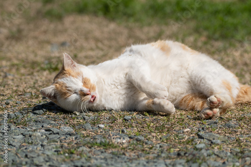 Fototapeta premium 寝ころがる猫 茶白猫