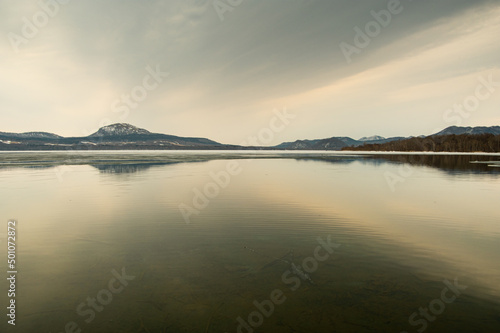 Obraz premium 湖に映る雲。日本の北海道の屈斜路湖。
