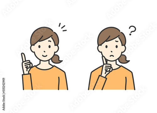 © hidamari, Naklejka premium 思いつく表情と考える表情の女性のイラスト