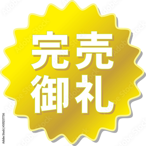 © tota, Obraz premium 「完売御礼」の文字が描かれた金色の歯車アイコン