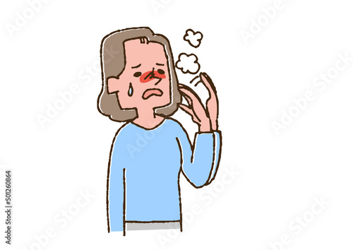 Obraz premium 火照りを感じている女性 コミカルな手書きの人物 ベクター、温かみのある線画