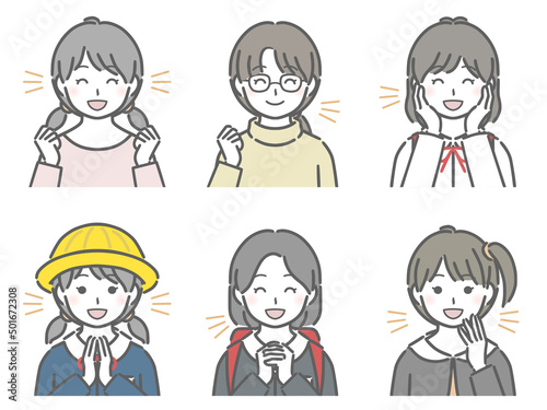 © ひかわ, Naklejka premium 喜ぶ女の子の上半身セット