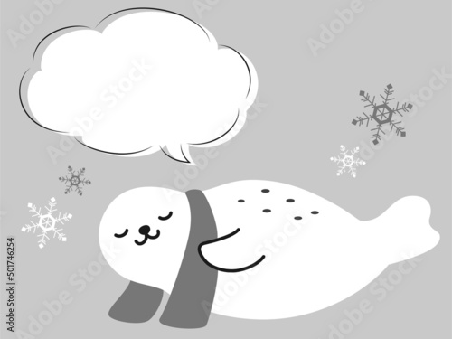Obraz premium 吹き出し付きクールタオルを巻くアザラシ(冷感イメージ)