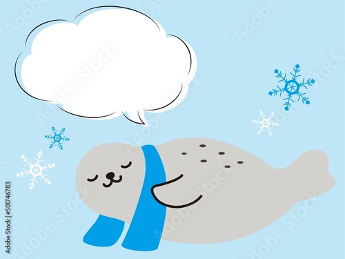 Obraz premium 吹き出し付きクールタオルを巻くアザラシ(冷感イメージ)