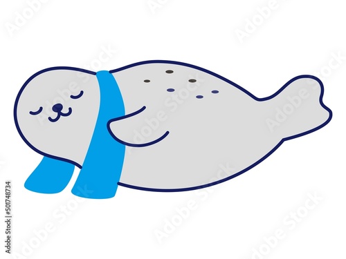 © Daphnia, Obraz premium クールタオルを巻くアザラシ(冷感イメージ)