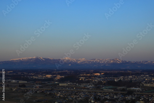 © yspbqh14, Fototapeta premium 岩手県北上市 夕焼けの北上市街地