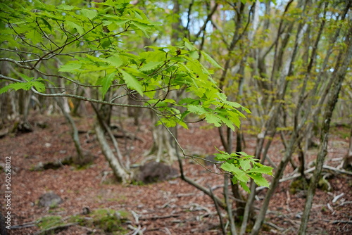 Fototapeta premium ミズナラの新緑が綺麗な雑木林