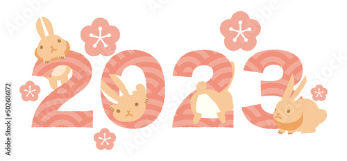 Obraz premium 2023年 ウサギ 兎 卯 年賀状 2023年文字デザイン