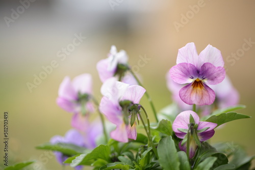 Obraz premium 寄せ植えしたビオラと姫コスモスのアップ