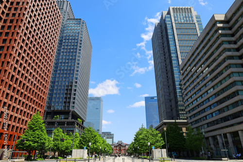 Obraz premium 青空の東京駅と高層ビル