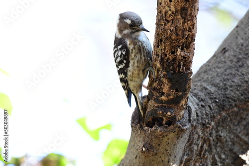 © みうらり miuRaRi, Obraz premium 木の枝を移動するコゲラ