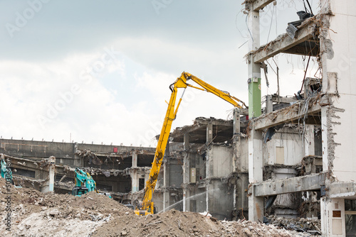 © area1964, Obraz premium パワーショベルによるビル解体工事現場