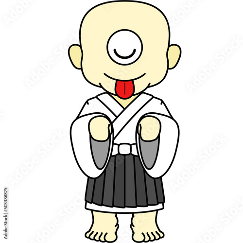 Obraz premium 目を閉じる一つ目小僧のイラスト