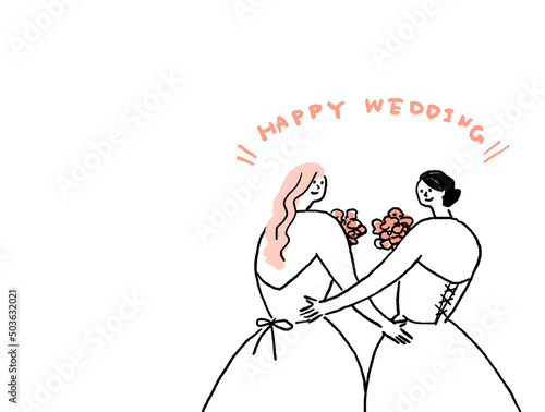 © POMO@Ymo, Fototapeta premium レズビアンカップルの結婚式、テキストあり(横、右配置)