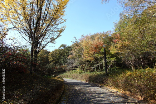 © saiyan8, Obraz premium 色付いたイチョウと遊歩道