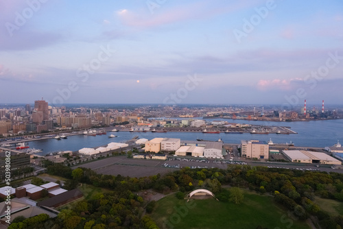 Naklejka premium 千葉市 千葉ポートタワーから見る夕方の工業地帯と千葉市の街並み