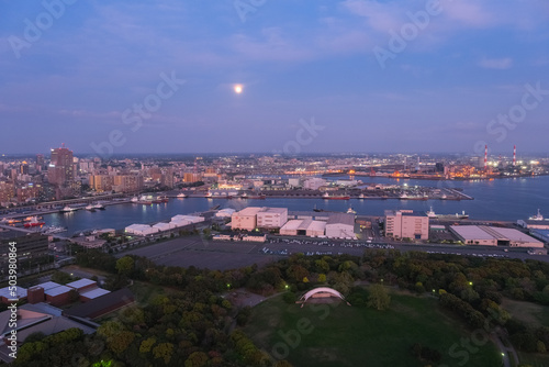 Obraz premium 千葉市 千葉ポートタワーから見る日没の工業地帯と千葉市の街並み