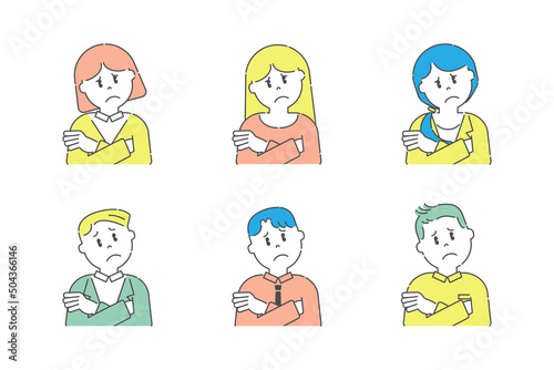 © oatmealco, Fototapeta premium 腕組みをして困っているいろいろな人4 男性 女性 カラー
