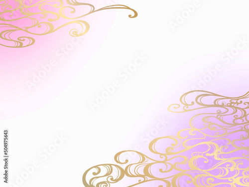 © nekonohana, Obraz premium 金色の和風の波模様フレーム紫
