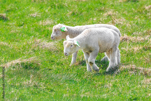 © Shigeyasu Urayama, Fototapeta premium 北海道恵庭市、生まれて間もない子羊のお散歩【5月】
