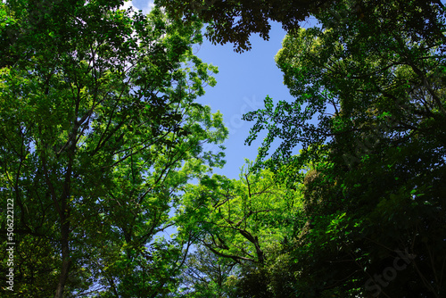 © Tsubasa Mfg, Obraz premium 東京の赤坂6丁目での青空と輝く樹木