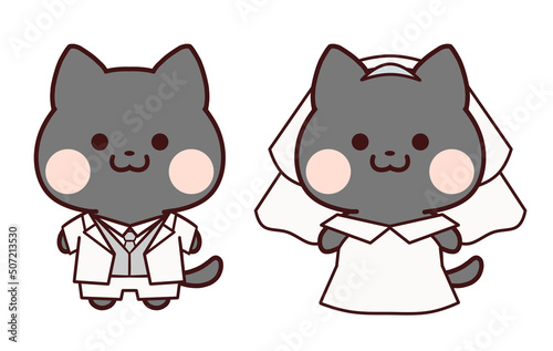 © natsurai, Fototapeta premium 新郎と新婦の黒猫