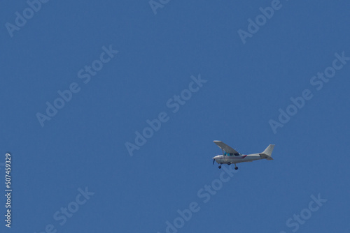 Obraz premium 東京港区南青山2丁目を小型飛行機が飛ぶ