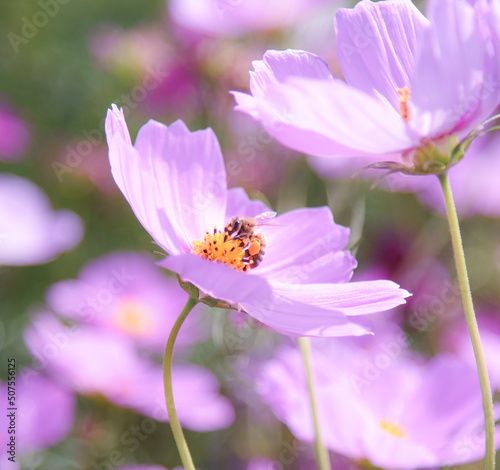 Obraz premium コスモスとミツバチ