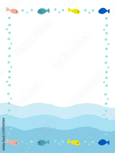 © ako, Obraz premium イラスト背景素材:魚と波のフレーム・枠