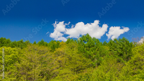 © Yuuki Kobayashi, Fototapeta premium 新緑の森と夏空