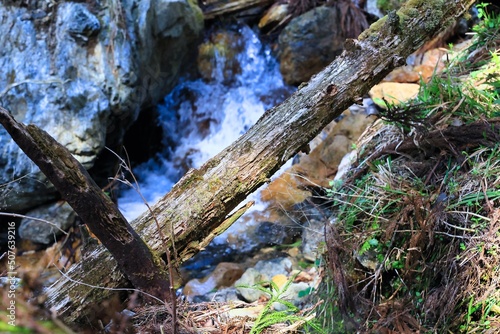 Fototapeta premium 苔むした岩と美しい清らかなせせらぎの流れ