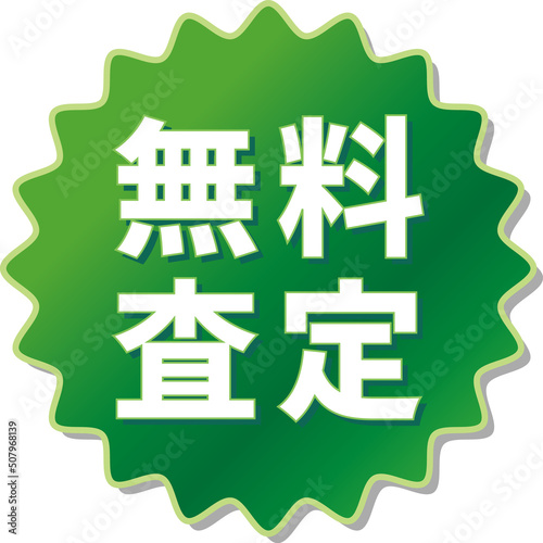 Obraz premium 「無料査定」の文字が描かれた緑色の歯車アイコン