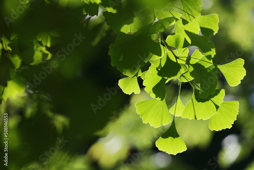 Fototapeta premium 逆光で撮影したイチョウの新緑