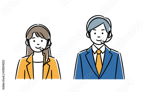 Naklejka premium コールセンターの男女のシンプルイラストセット