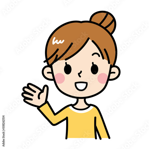 Obraz premium 説明する若い女性のイラスト 主婦 お母さん 素材 かわいい こちら