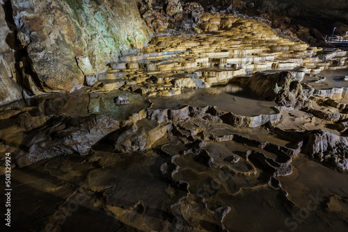 Fototapeta premium 洞窟内 山口県 美祢市 秋芳洞 鍾乳洞 洞窟 川 地下水