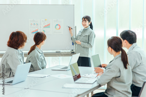Fototapeta premium プレゼン・セミナー会議をする工場の作業員