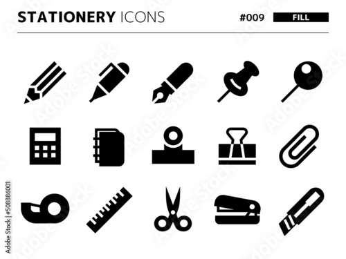 Obraz premium 文房具に関連する塗りつぶしスタイルのアイコンセット_009