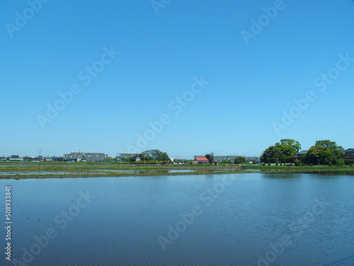 © smtd3, Obraz premium 春の郊外の青空を映す代田風景