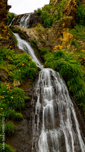 Naklejka premium 佐渡島 五段の滝 トビシマカンゾウ