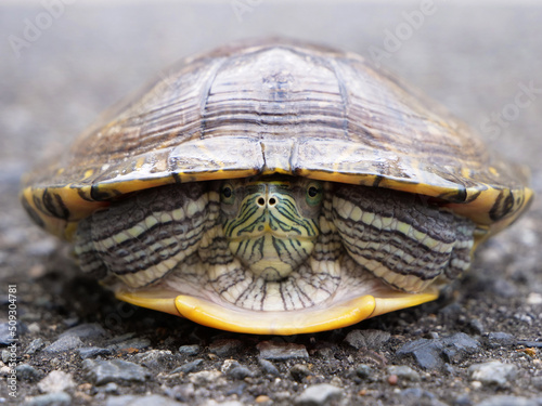 Obraz premium 甲羅の中に隠れているミドリガメ