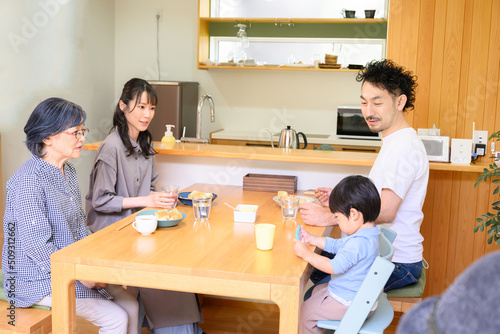 © kapinon, Obraz premium 3世代家族の食卓 ママがスマホ注意する やや俯瞰